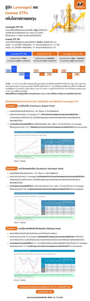 Wealth 23 Sept 2025, 18:31 รู้จัก Leveraged และ Inverse ETFs เพิ่มโอกาสการลงทุน ท่านสามารถศึกษาข้อมูลเกี่ยวกับผลิตภัณฑ์ L&I ETFs เพิ่มเติมได้ที่ https://www.set.or.th/th/market/product/etf/introduction