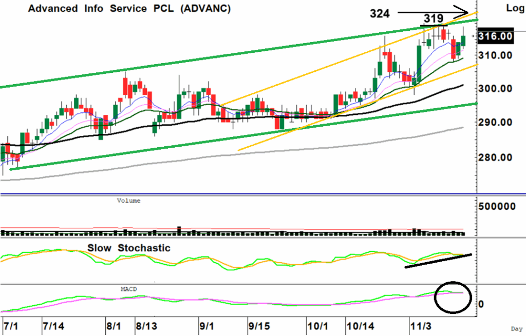 สถานะถือต่อรอขาย: ราคาหุ้นยกฐานขึ้นในกรอบ Uptrend line พยายามทดสอบจุดสูงสุดเดิม ขณะที่เกิดสัญญาณซื้อจาก Stochastic ชี้ขึ้น ยืนยันแนวโน้มขาขึ้น และ MACD ชี้ตัด Signal ขึ้นเป็นบวกสนับสนุน เป็นจังหวะซื้อเก็งกำไร