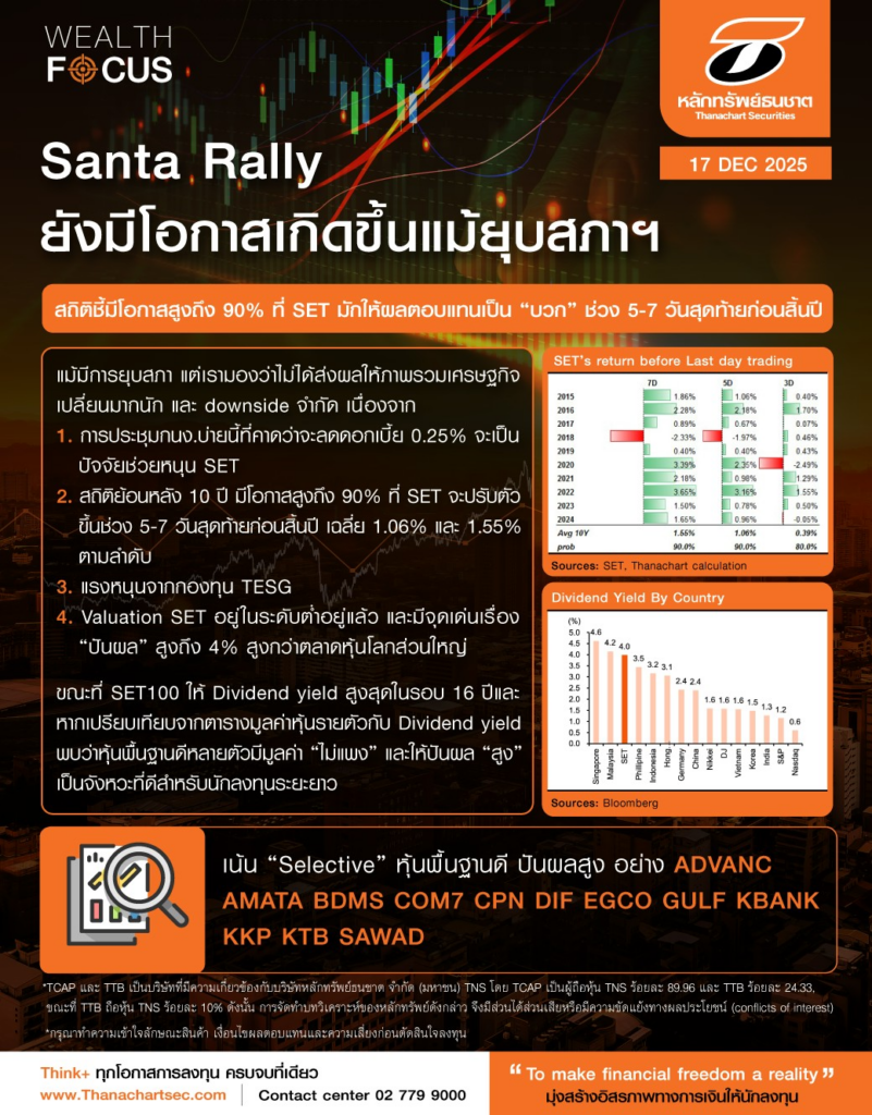 Strategy 17 Dec 2025, 12:19 Santa Rally ยังมีโอกาสเกิดขึ้นได้ แม้ยุบสภาฯ อ่านรายละเอียดฉบับเต็มได้ที่รายงาน Pathumwan Corner วันนี้