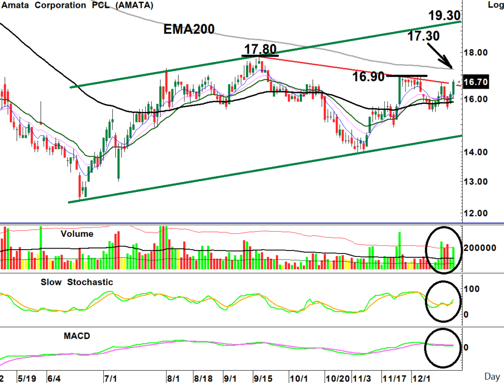 สถานะเริ่มสะสม: ราคาหุ้นฟื้นตัวขึ้นจากแนว Uptrend Line กลับมายืนเหนือ EMA200วันได้ พร้อมปริมาณการซื้อขายหนาแน่น ขณะที่เกิดสัญญาณซื้อจาก Stochastic ขึ้นได้รอบใหม่ในโซนต่ำและ MACD ฟื้นกลับมาชี้ตัด Signal ขึ้นสนับสนุน เป็นจังหวะซื้อเก็งกำไร