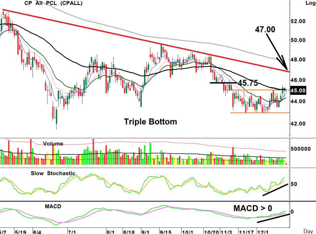 สถานะซื้อเพิ่ม: ราคาหุ้นกลับตัวขึ้นทะลุกรอบ Sideway Bottom ด้วยรูปแบบ Triple Bottom พร้อมปริมาณการซื้อขายหนาแน่น ขณะที่เกิดสัญญาณซื้อจาก MACD พลิกกลับมาเป็นบวกได้วันแรกและค่าเฉลี่ยเริ่มทำ Golden Crossสนับสนุน เป็นจังหวะซื้อเก็งกำไร