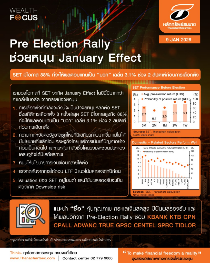 Strategy 9 Jan 2026, 09:56 เปิดสถิติ SET ก่อนการเลือกตั้ง และแนวโน้มการลงทุนในช่วงนี้ อ่านรายละเอียดฉบับเต็มได้ที่ รายงาน Pathumwan Corner วันนี้