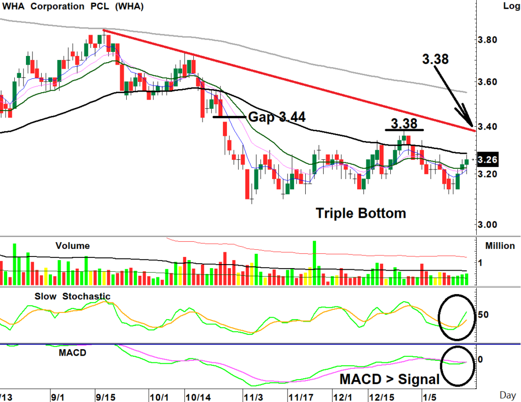 สถานะเริ่มสะสม: ราคาหุ้นกลับตัวขึ้นทำแท่งเทียน Three White Soldiers ด้วยรูปแบบ Triple Bottom พร้อมปริมาณการซื้อขายหนาแน่น ขณะที่เกิดสัญญาณซื้อจาก Stochastic ขึ้นได้รอบใหม่ในโซนต่ำและ MACD กลับมาชี้ตัด Signal ขึ้นสนับสนุน เป็นจังหวะซื้อเก็งกำไร