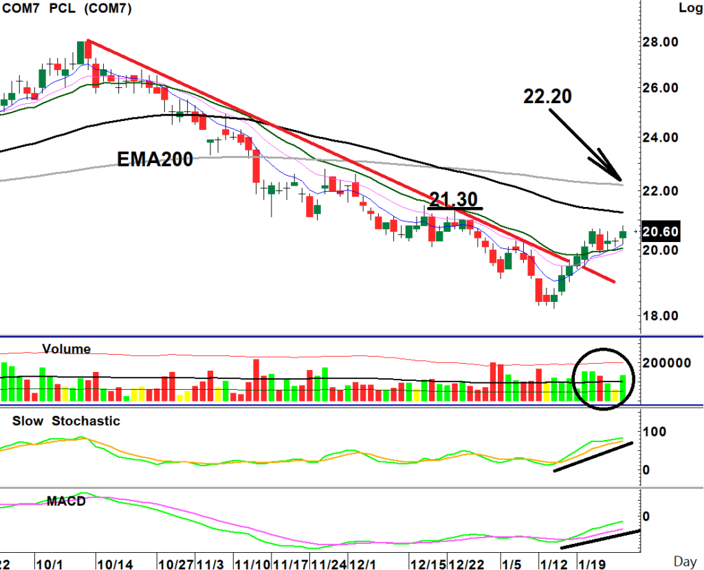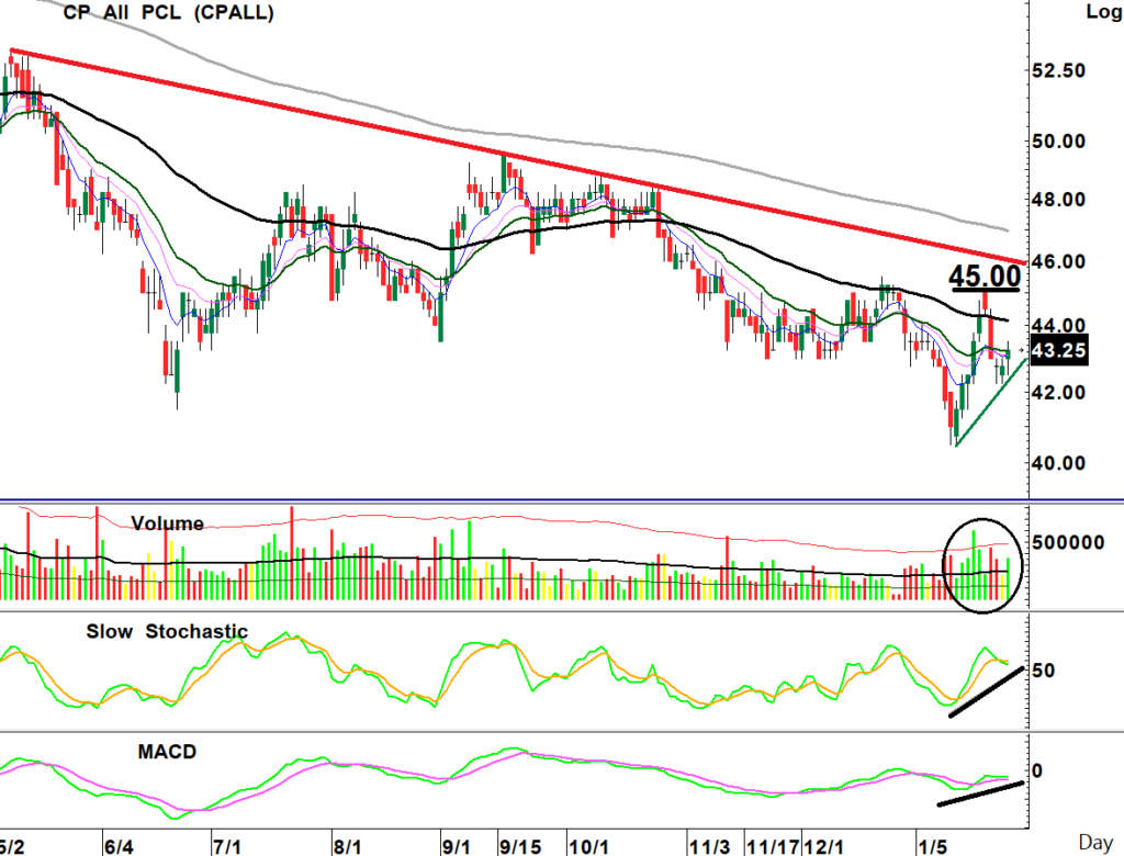 สถานะเริ่มสะสม: ราคาหุ้นกลับตัวขึ้นทะลุแนวกด Downtrend Line ระยะกลาง กลับมายืนเหนือค่าเฉลี่ย 1 เดือน พร้อมปริมาณการซื้อขายสูงยืนยันการ Breakout ขณะที่เกิดสัญญาณซื้อจาก Stochastic ขึ้นรอบใหม่และ MACD ชี้ขึ้นใกล้เป็นบวกสนับสนุน เป็นจังหวะซื้อเก็งกำไร