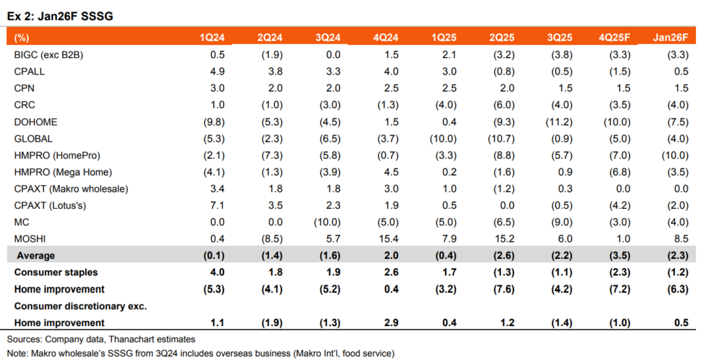 (-) Update SSSG กลุ่มค้าปลีกเดือนม.ค. ยังอ่อนแอต่อเนื่อง