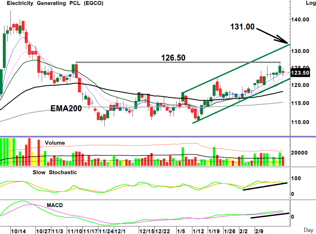 สถานะถือต่อรอขาย: ราคาหุ้นยกฐานขึ้นทำ Higher-High ในกรอบ Uptrend ระยะกลาง พร้อมปริมาณการซื้อขายหนาแน่น ขณะที่เกิดสัญญาณซื้อจาก Stochastic และ MACD เป็นบวกตัดSignal ยกฐานขึ้น พร้อมเกิด Golden Cross เป็นจังหวะซื้อเก็งกำไร