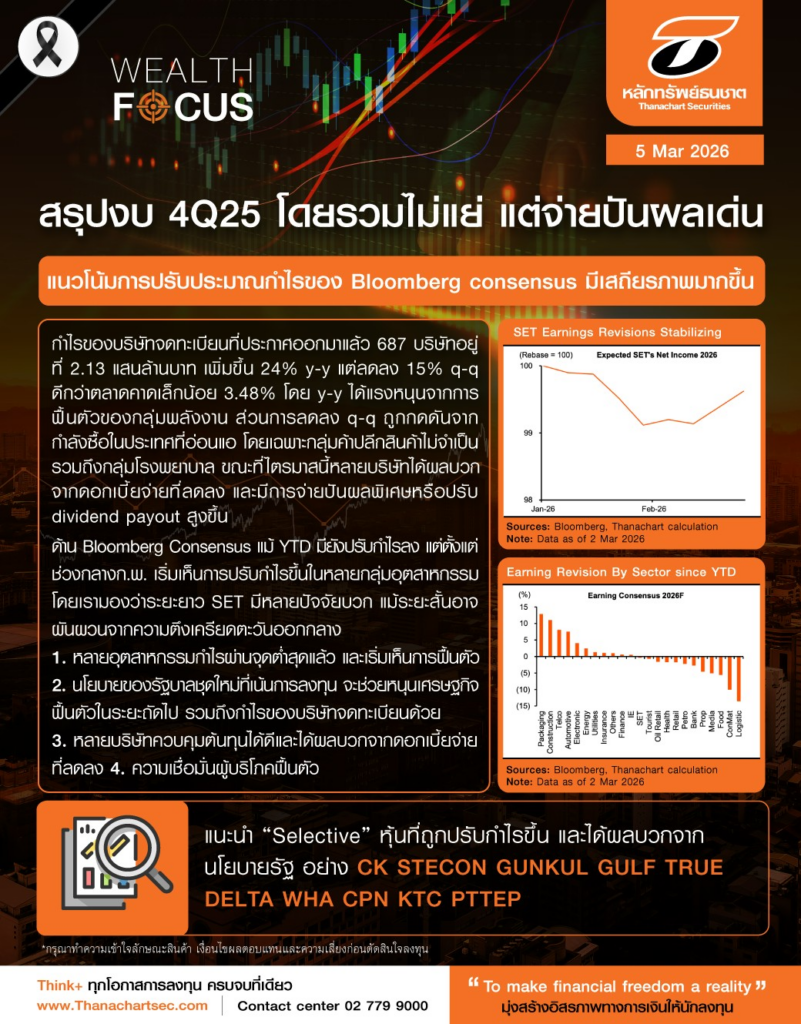 Strategy 5 Mar 2026, 13:24 สรุปงบ 4Q25 โดยรวมไม่แย่ แต่จ่ายปันผลเด่น อ่านรายละเอียดฉบับเต็มได้ที่ รายงาน Pathumwan Corner วันนี้
